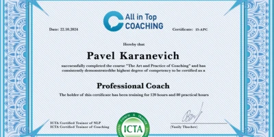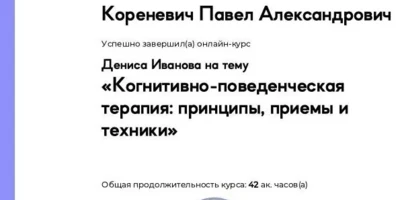 У меня высшее образование, сертификат от Ассоциации КПТ в когнитивно-поведенческой терапии. Я продолжаю своё обучение в Московском институте психоанализа и прохожу сертификационный курс коучинга в ICTA. Эти знания позволяют мне эффективно помогать клиентам достигать их целей и улучшать качество жизни.